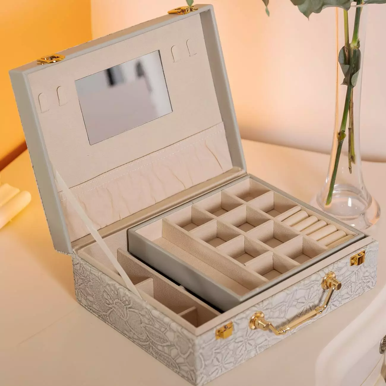 Органайзер доповнений дзеркалом у кришці, що робить його
