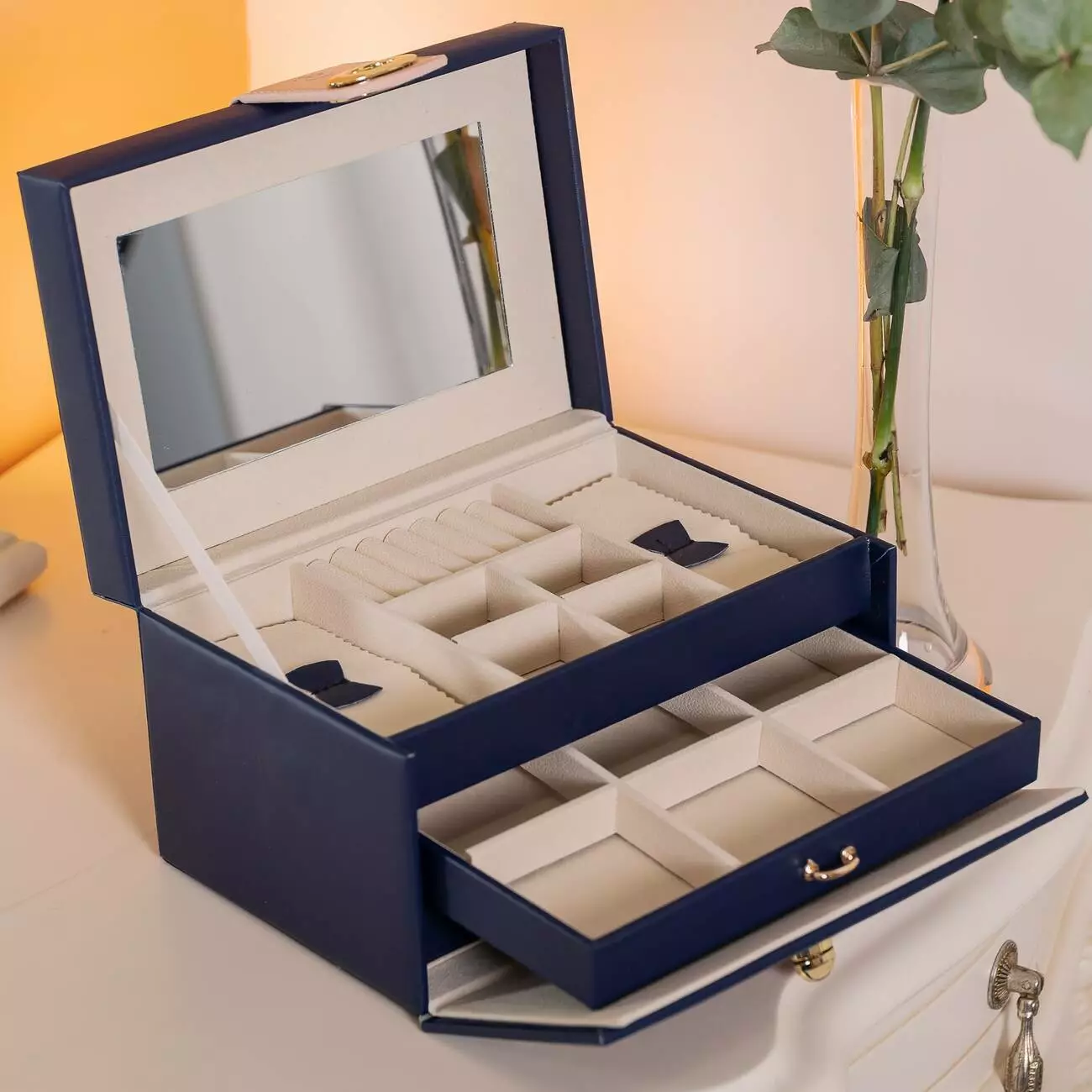 Органайзер доповнений дзеркалом у кришці, що робить його