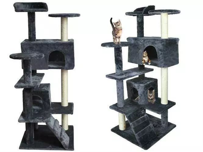 Дерево для кішки – сірий ігровий комплекс із дряпкою, будиночками