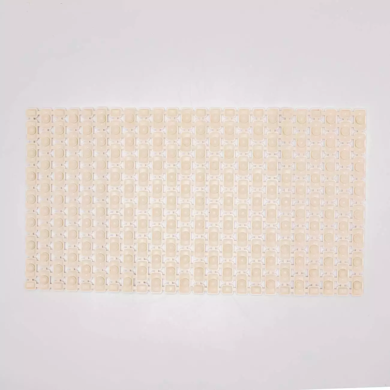 Матеріал ПВХ робить килимок міцним та зносостійким, а також стійким до впливу води та мийних засобів. Прогумована поверхня має приємну текстуру, яка додатково підсилює ефект протиковзання. Завдяки оптимальним розмірам килимок легко поміщається у стандартний душовий піддон та не вимагає складного догляду — достатньо промивати його після використання.