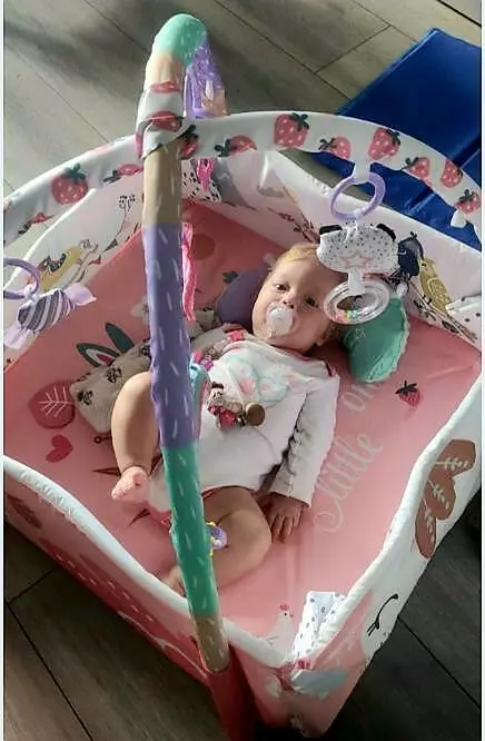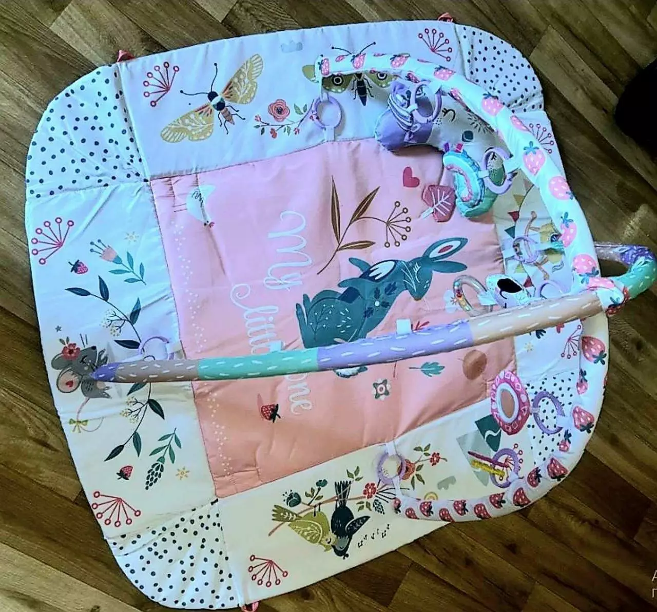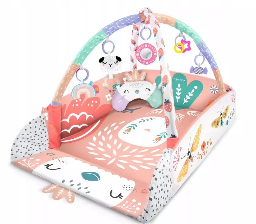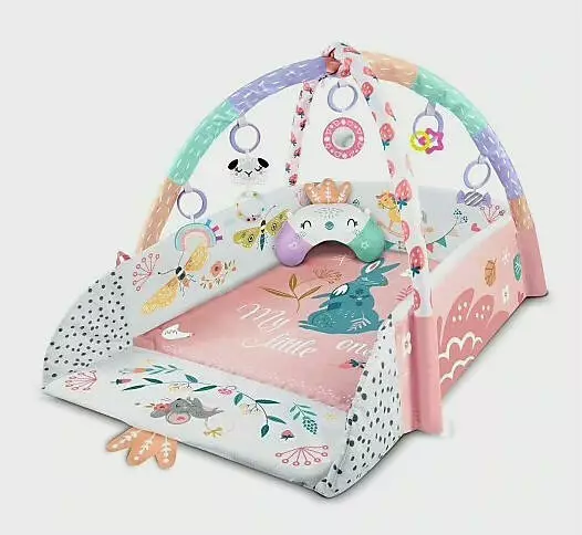 У комплекті: килимок, 4 стінки, 2 дуги, 7 іграшок, подушка