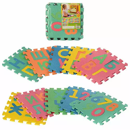 Килимок Мозаїка M 2736 EVA, абетка (укр.) та цифри, 10 дет., кул., 29-29-8 см