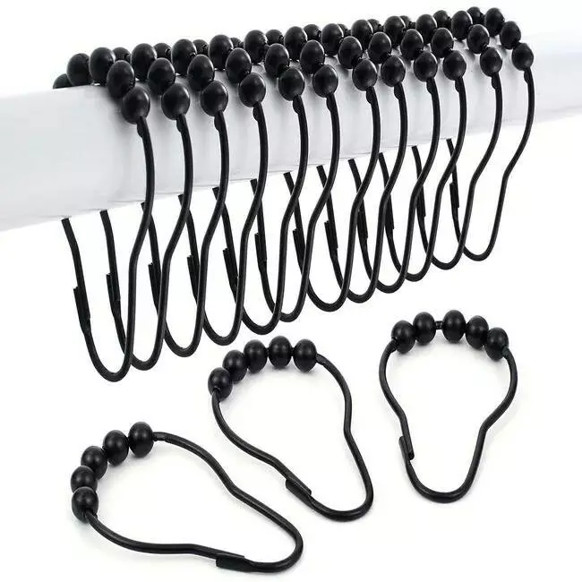 Металеві кільця на шторку для ванної кімнати, чорного кольору, 12