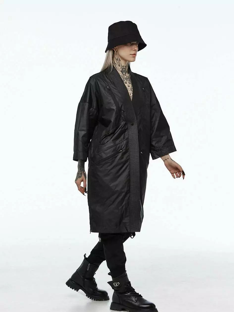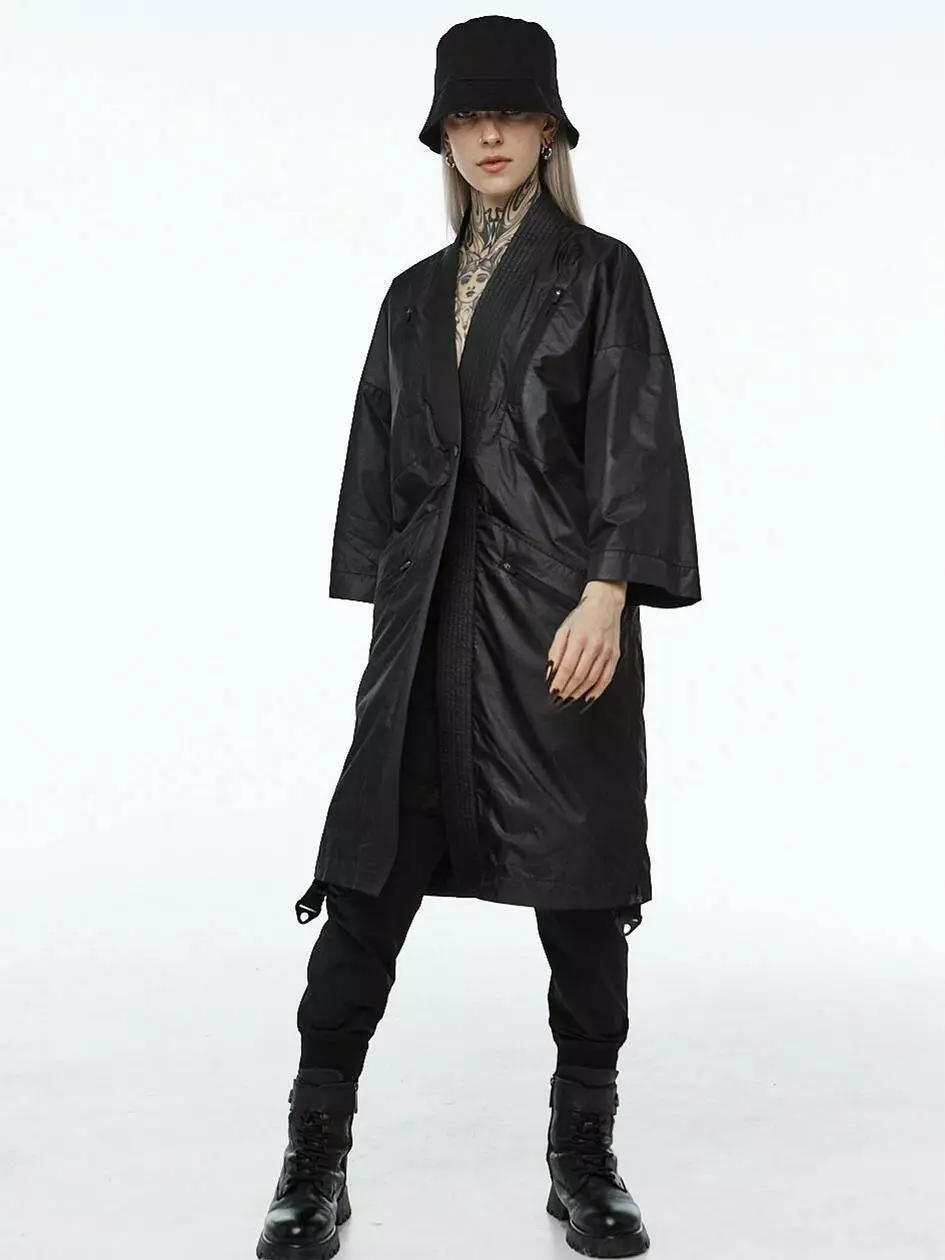 Довге кімоно-хаорі оверсайз крою з двома накладними кишенями з