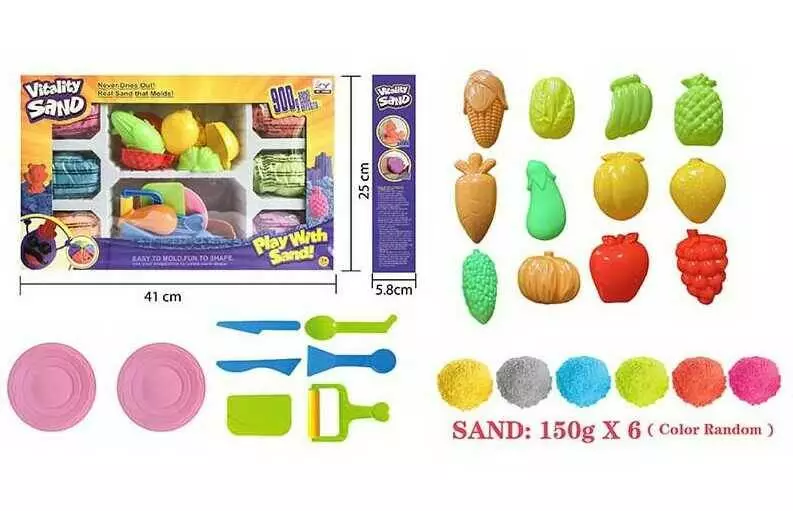 Кінетичний пісок 1901 D/F/G (18/2) 3 види, 900 г, 6 кольорів, 14 форм, інструменти, в коробці, ВИДАЄТЬСЯ ТІЛЬКИ МІКС ВИДІВ