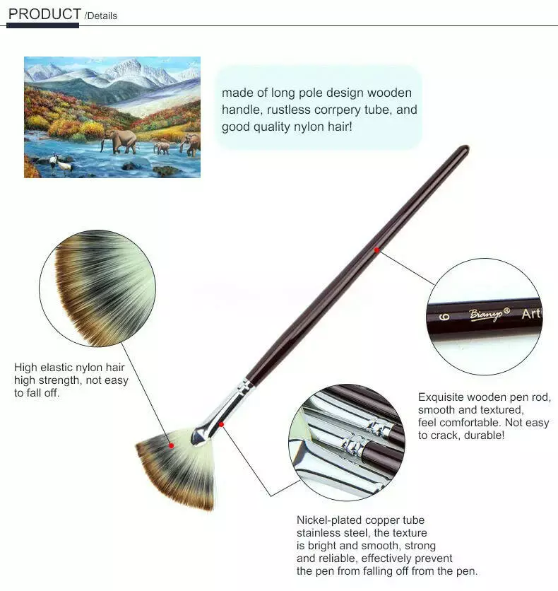 Набор веерообразных нейлоновых кисточек состоит из 6 штук и
