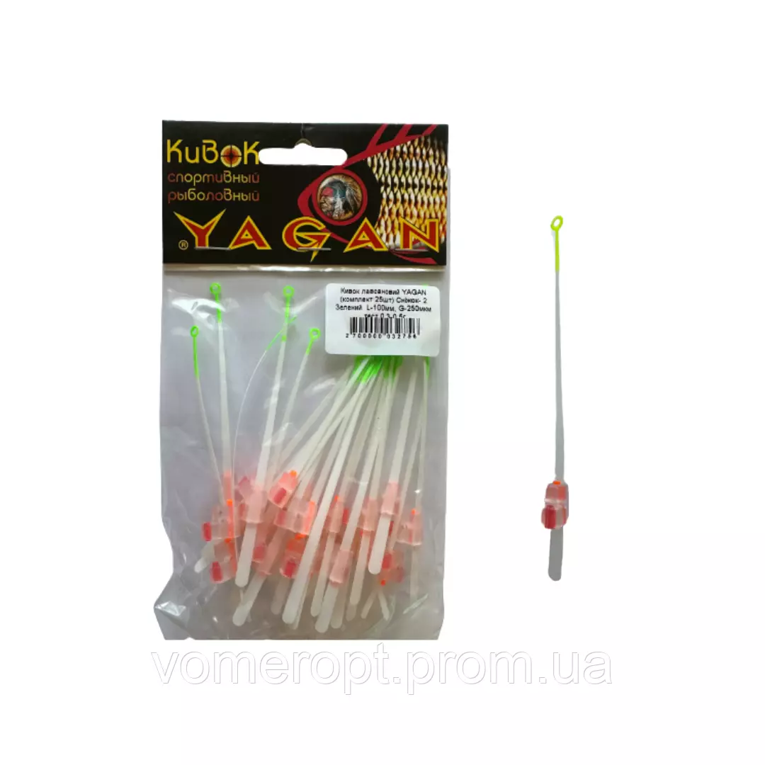 Кивок лавсановий YAGAN (комплект 25шт) Сніжок- 2 Зелений L-100мм, G-250мкм тест 0,3-0,5г