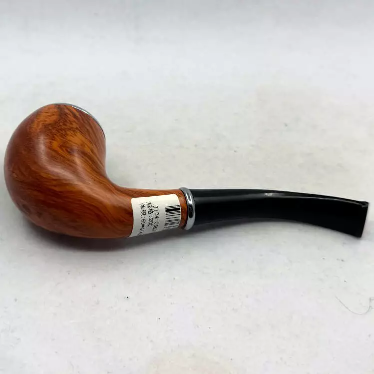 Классическая курительная трубка CHANG FENG с элегантным древесным оттенком и современными деталями. Чаша выполнена из бакелита с металлической вставкой и украшена серебристым ободком, что придаёт изделию утончённый вид. Чёрный пластиковый мундштук плавно изогнут и удобен в использовании, легко снимается для чистки. Трубка представлена на стильной металлической подставке цвета «розовое золото», которая подчёркивает её премиальный вид.