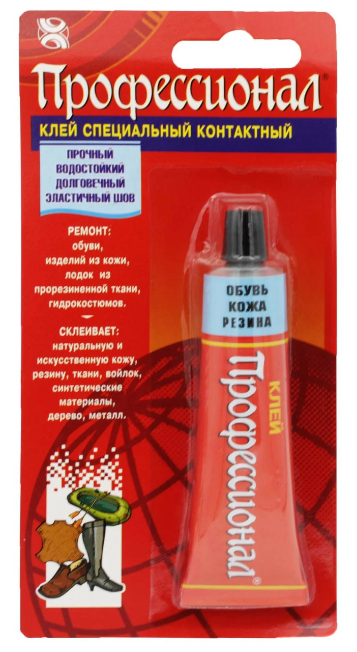 Клей для профессионального ремонта обуви, кожаных изделий, резиновых предметов, тканевых и синтетических материалов. Имеет высокую прочность и водостойкость. Склеивает за пять минут, максимум сутки для полной фиксации.
