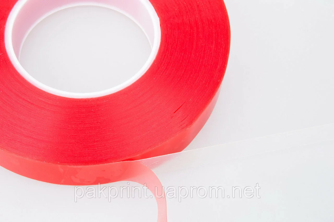 Двухсторонняя клейкая лента сильной фиксации - это прозрачная двусторонняя клейкая лента повышенной клейкости, с основой из прозрачной пленки ПЕТ (поливинил терефталат) покрытой модифицированным акриловым клеем.
