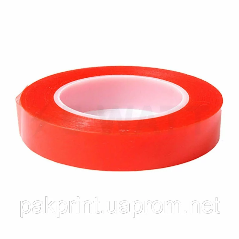 У компании «ПАКПРИНТ» в ассортименте двухсторонний скотч с полиэтиленовым лайнером красного цвета. Вы можете купить двусторонний скотч повышенной фиксации в следующих стандартных размерах: ширины 4 мм, 6 мм, 9 мм, 12 мм, 19 мм,38 мм, 48 мм и до 1000 мм длина рулона 50 м другие размеры изготавливаются только под заказ в течение 1 - 5 рабочих дней.