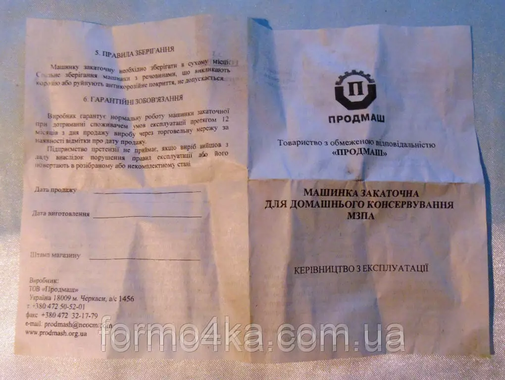 Производитель з-д Продмаш г. Черкассы