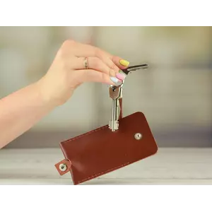 Компактна ключниця для невеликої кількості стандартних ключів. Закривається аксесуар за допомогою шкіряного ремінця, який фіксується металевою кнопкою. При певному навику може відкриватися і закриватися однією рукою, що дуже полегшує взаємодію з ключами.