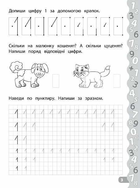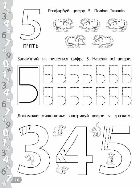Зошит спрямований на розвиток дрібної моторики, навичок письма та усної лічби. Працюючи із цим виданням, дитина зможе не тільки познайомитися з цифрами та навчитися їх писати, потренуватися рахувати в межах 10 та писати графічні диктанти, але й розважитися: виконати захопливі завдання за допомогою наліпок. Прописи призначені для спільної роботи дорослих з дітьми дошкільного віку.