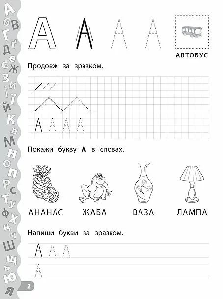 Фотография 2 товарной позиции интернет-магазина детских игрушек www.smarttoys.com.ua Книга Каліграфія для дошкільнят. Учимо та пишемо букви. Прописи із завданнями та наліпками