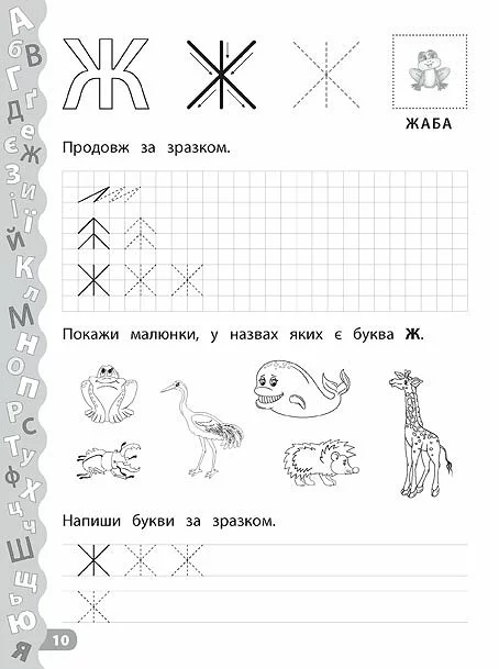 Зошит спрямований на розвиток дрібної моторики й навичок письма, а також вивчення українського алфавіту. Працюючи із цим виданням, дитина зможе не тільки познайомитися з літерами українського алфавіту, навчитися їх писати й поповнити словниковий запас, але й розважитися: виконати захопливі завдання за допомогою наліпок. Прописи призначені для спільної роботи дорослих з дітьми дошкільного віку.