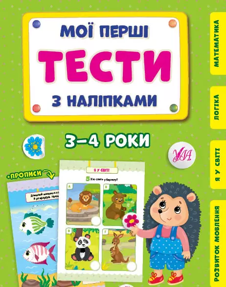 Видання «Мої перші тести з наліпками. 3–4 роки» допоможе батькам перевірити обізнаність малюка за напрямками «Математика», «Логіка», «Я у світі» та «Розвиток мовлення». Запитання кожного розділу укладені відповідно до програм дошкільного розвитку та вікових особливостей дитини. Переглянувши варіанти відповідей, малюк має обрати один і позначити його наліпкою. Проходження таких тестів в ігровій формі зумовить поступове звикання до них й змалечку підготує дитину до тестової форми перевірки знань у майбутньому. Окремим додатком до тестів будуть сюжетні кольорові прописи, що допоможуть дитині навчитися домальовувати малюнки по пунктиру та розфарбовувати їх. Видання сприятиме розвитку уваги, мислення й графічних навичок, тренуванню пам’яті й дрібної моторики пальців рук, спонукатиме до акуратності.