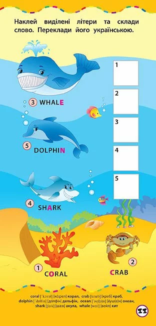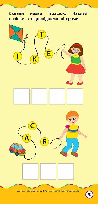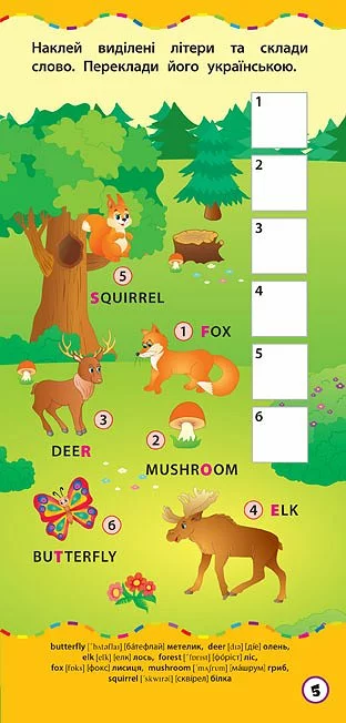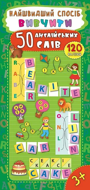 англійські слова, навчиться складати їх з наліпок, а також