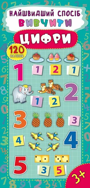 Із цією книгою ваша дитина легко та швидко запам’ятає цифри та порядок чисел, потренується їх писати, а також матиме змогу повправлятися в лічбі та розв’язати прості завдання за допомогою наліпок. Видання призначене для спільної роботи дорослих з дітьми дошкільного віку.