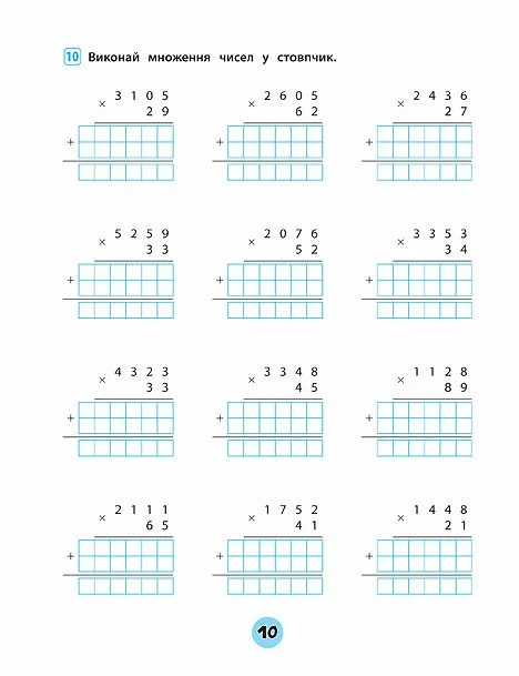 Посібник допоможе учням 4 класу розвинути й удосконалити навички письмового додавання та віднімання, множення та ділення багатоцифрових чисел у межах 1?000?000 у стовпчик, роботи з іменованими числами, розв’язування складених задач із буквеними даними. Перевірити правильність рішення допоможуть ключі, що знаходяться в кінці зошита. Матеріал відповідає освітній програмі з математики для 1–4 класів.