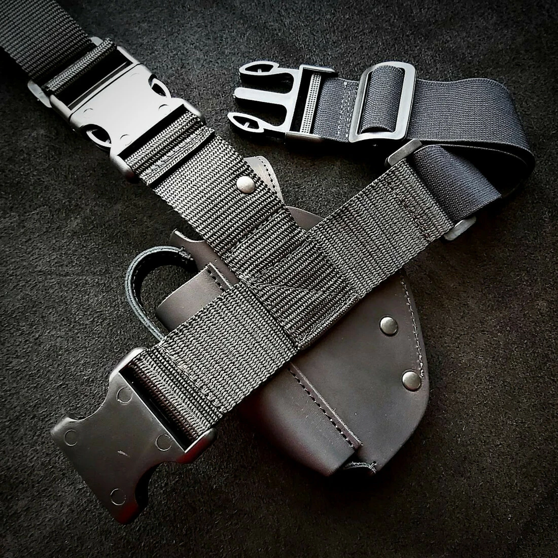 • Кобура не знімна, пришита до системи стегна. Стропа, гумка, фастекси міцні. Ширина фастексів 4 см