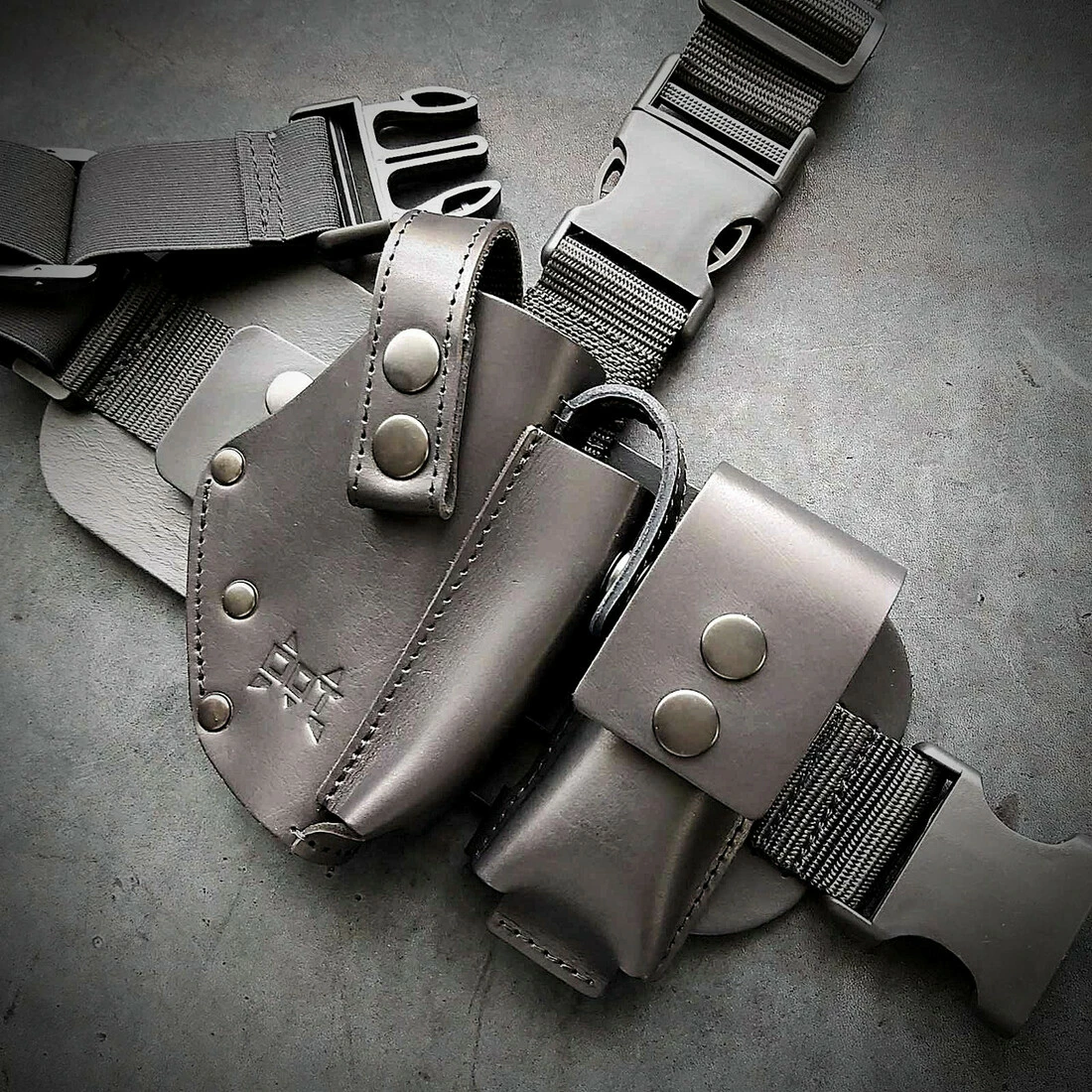 Кобура на стегно під ПМ з додатковим підсумком під магазин/ніж, шкіряна, чорна