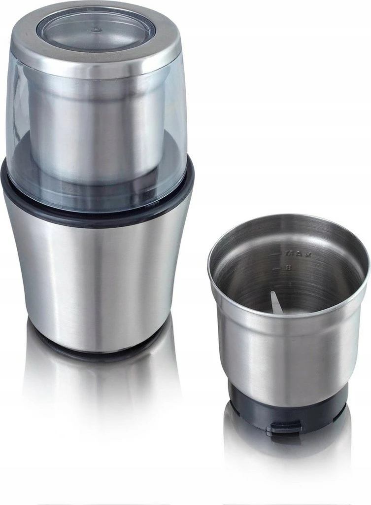 Ця кавомолка включає 2 дуже великі контейнери з нержавіючої сталі, подвійне лезо з нержавіючої сталі для кавових зерен і четверне лезо з нержавіючої сталі для сушених і свіжих трав, горіхів або спецій.