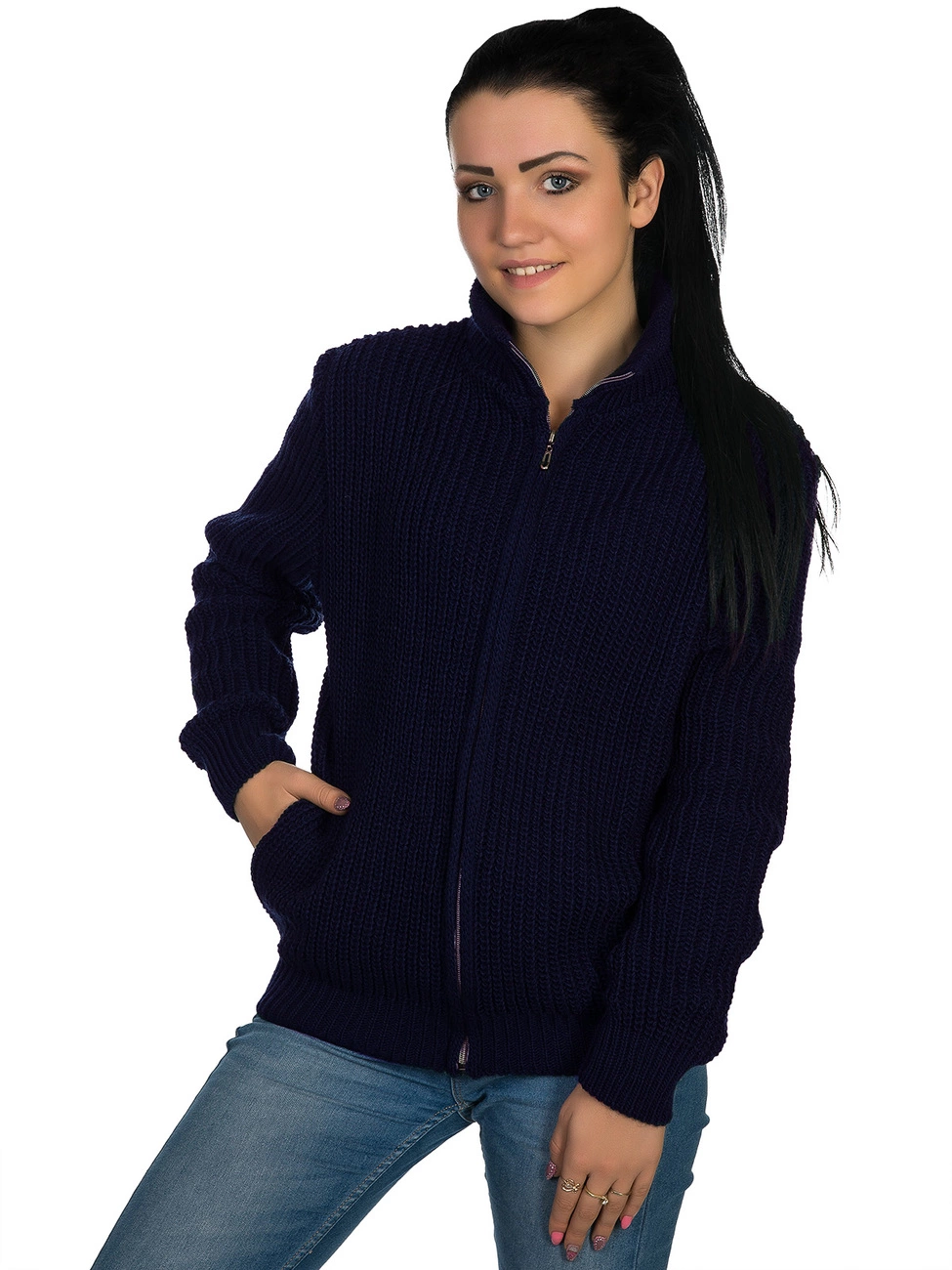 выполнен стойкой. Рукава, низ изделия и воротник оформлены