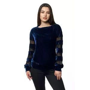Очень стильная женская кофта выполнена из ткани велюр высокого качества. Кофта свободного покроя, рукава с вставками сетка, на манжетах. Нарядная кофта превосходно сочетается с классическими элементами гардероба, актуальными для вечернего выхода и торжественной обстановки.