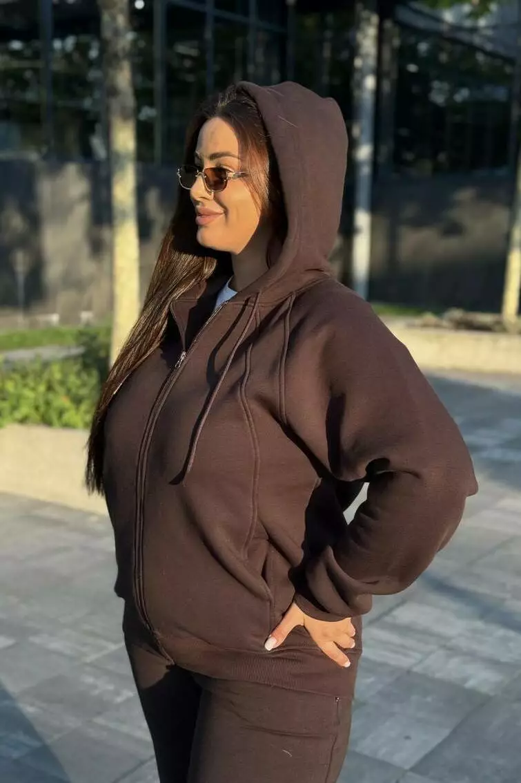 Жіноча кофта на флісі з капюшоном та замком Тепла та стильна жіноча