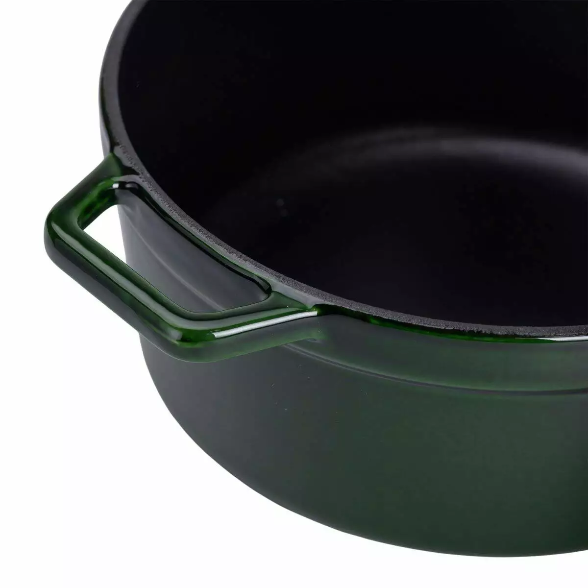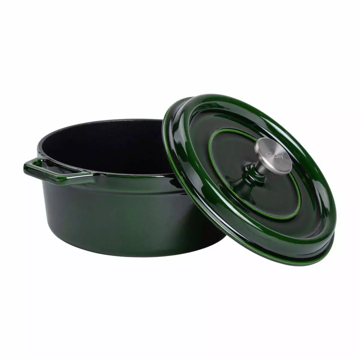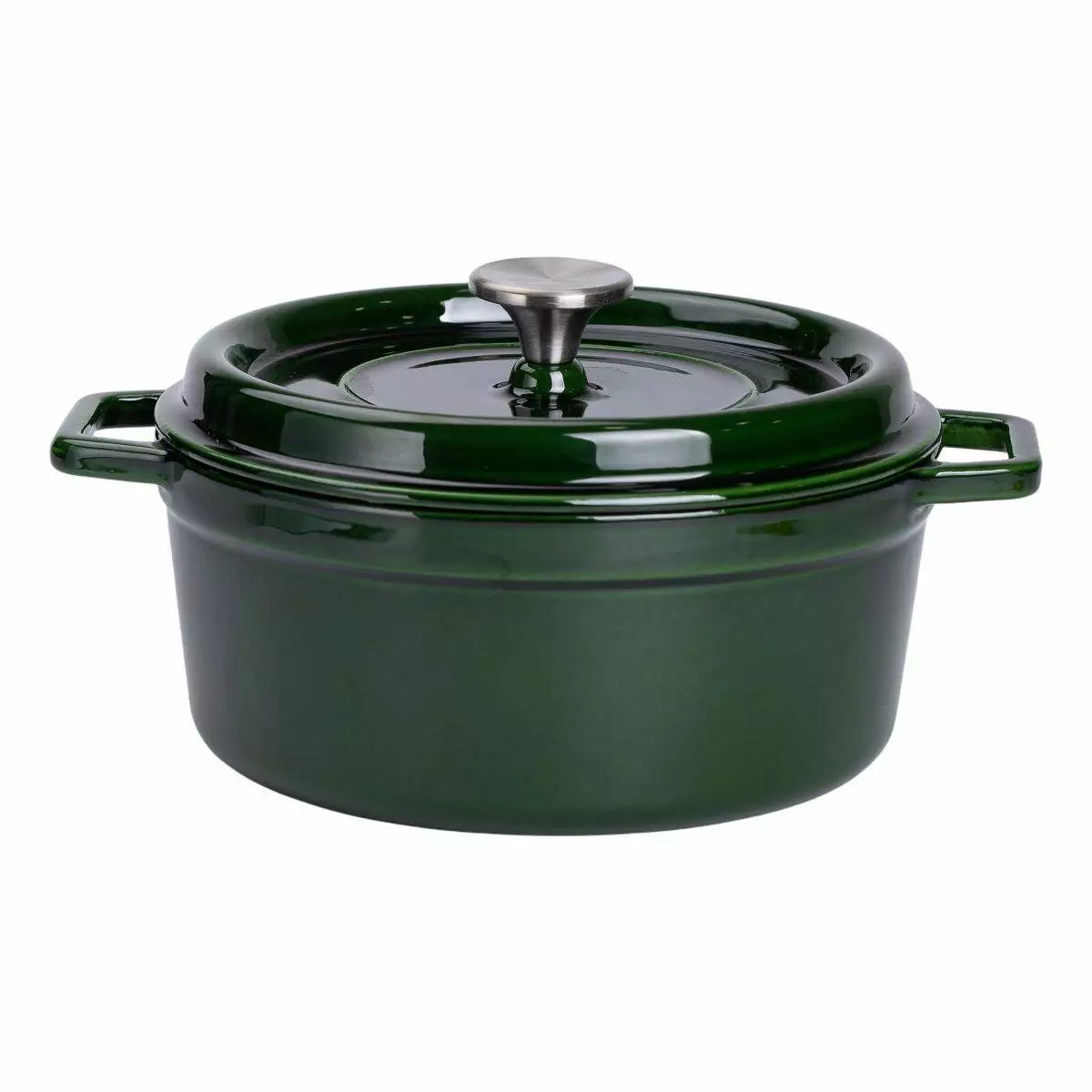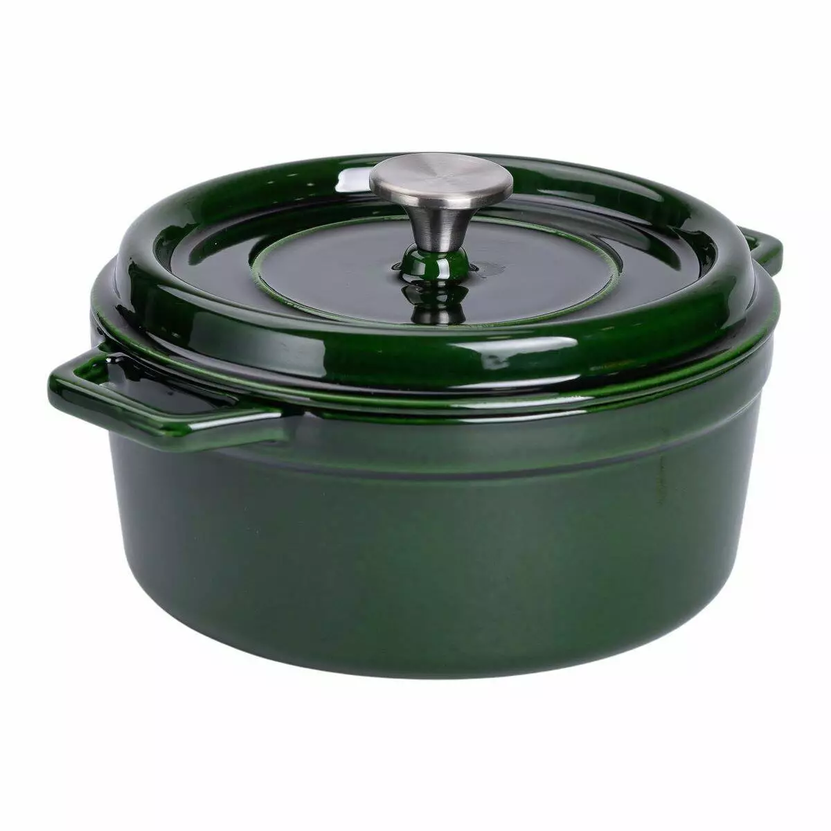 Кокотниця чавунна з емальованим покриттям 3.5 л – надійний кухонний посуд для приготування страв із тривалим томлінням. Завдяки чавунній основі, вона рівномірно розподіляє тепло та довго зберігає його, що робить її ідеальною для запікання, тушкування та приготування гарячих страв у духовці або на плиті. Емальоване покриття захищає від окиснення, спрощує догляд і дозволяє зберігати страви безпосередньо в кокотниці.