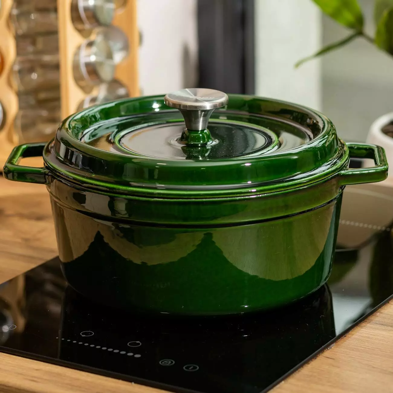 Товщина стінок і дна складає 5 мм, що забезпечує ефективний розподіл тепла без перегріву. Вага 5,5 кг гарантує стабільність під час приготування. Завдяки класичному дизайну, кокотниця стане не лише практичним, а й стильним доповненням кухні. Вона підходить для щоденного використання та дозволяє досягти ресторанної якості страв у домашніх умовах.
