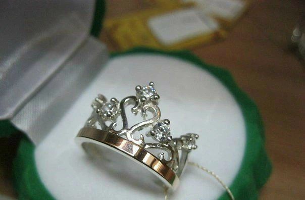 Серебряное кольцо корона с золотой пластиной и вставками с фианитов.