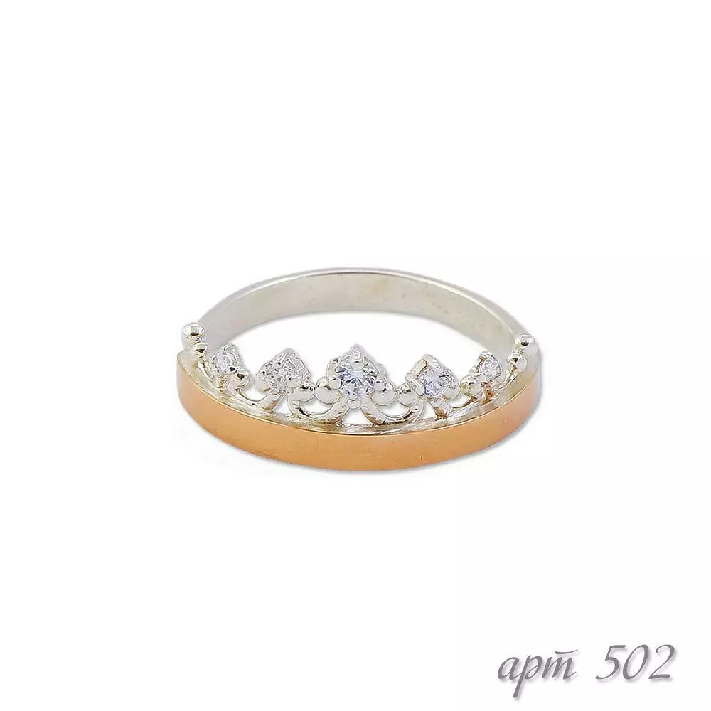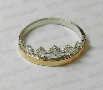 Серебряное кольцо корона с золотой пластиной и вставками с