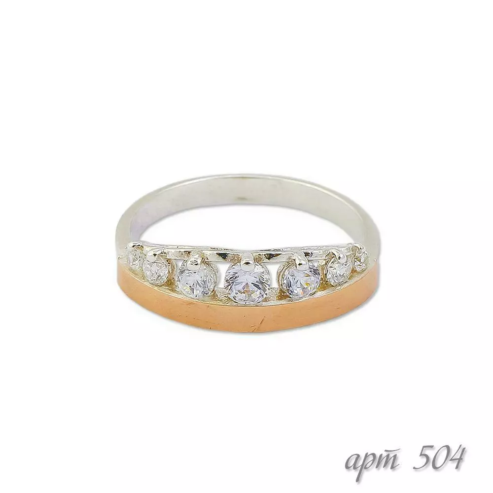 Серебряное кольцо корона с золотой пластиной и фианитами .