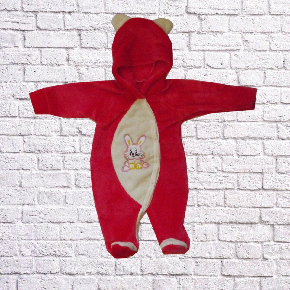 Комбинезон с вышивкой комбинированный махровый с капюшоном -ушками