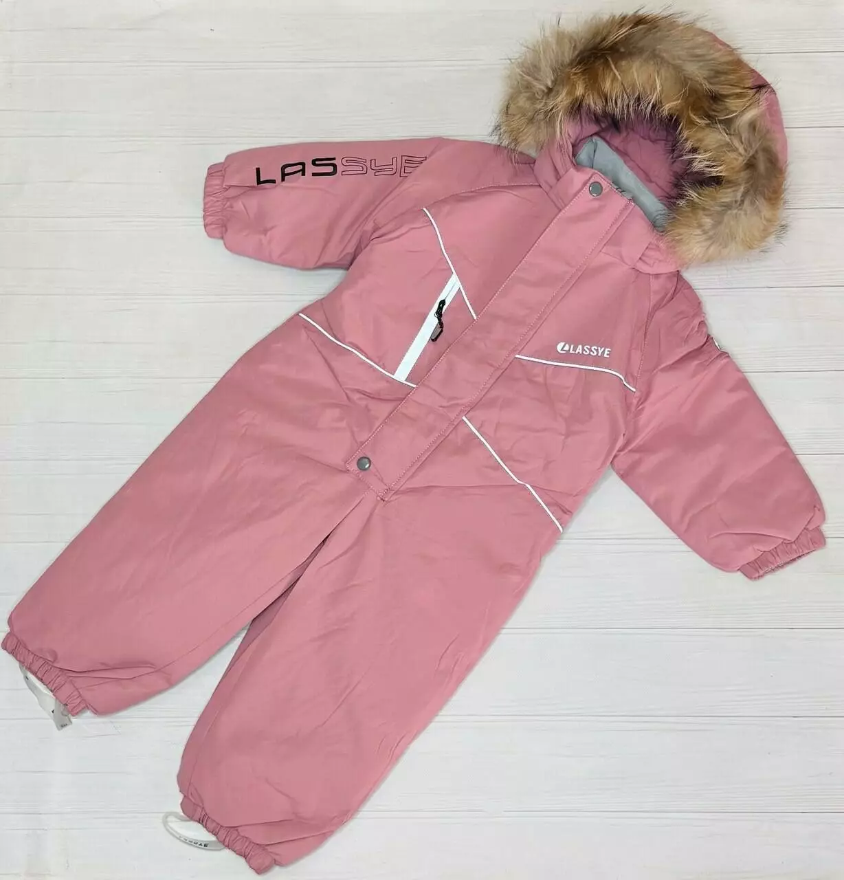 <p>Дитячий зимовий комбінезон Lassye рожевий з хутром<br