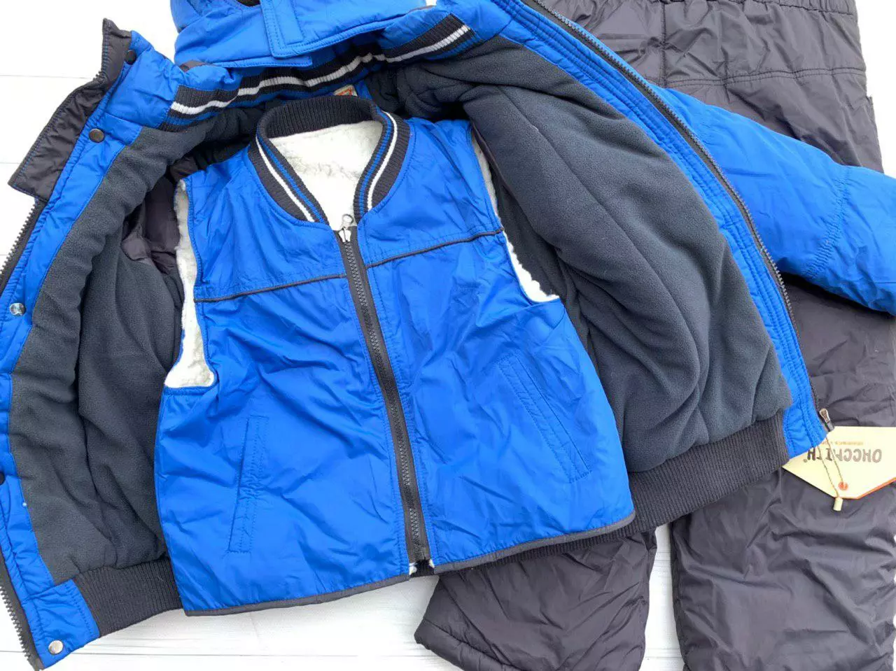 Комплект зимний для мальчика куртка, полукомбинезон, жилет на овчине, модель 9003