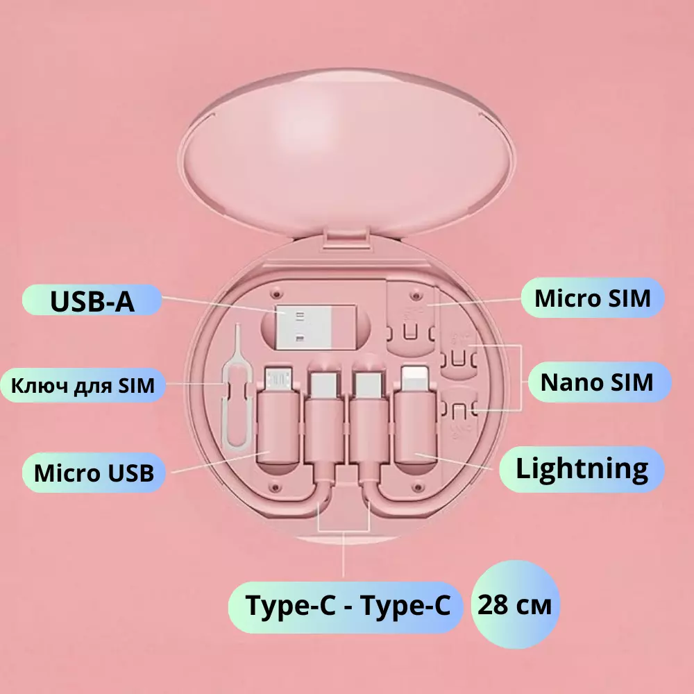 передачі даних і зручного зберігання SIM-карт, а стильний рожевий