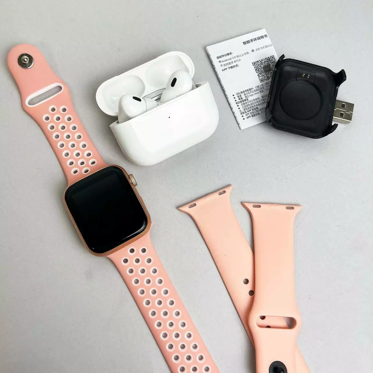 Комплект Basic T55 - Air Pro 2 / Smart Watch / 2 ремінці (Рожевий)