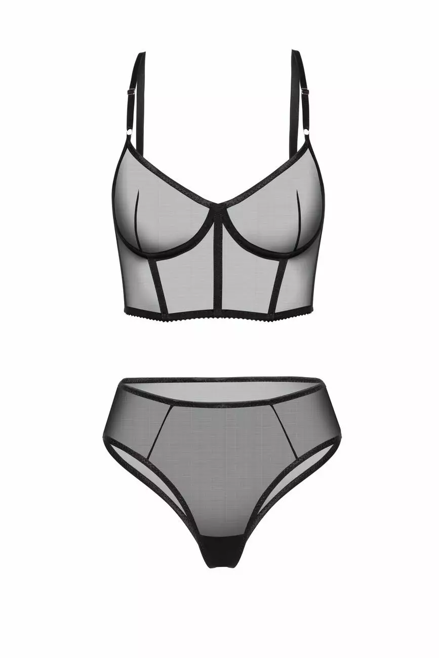 Топ-корсет із трусиками високої посадки виконані з ніжної, але міцної еластичної сітки.