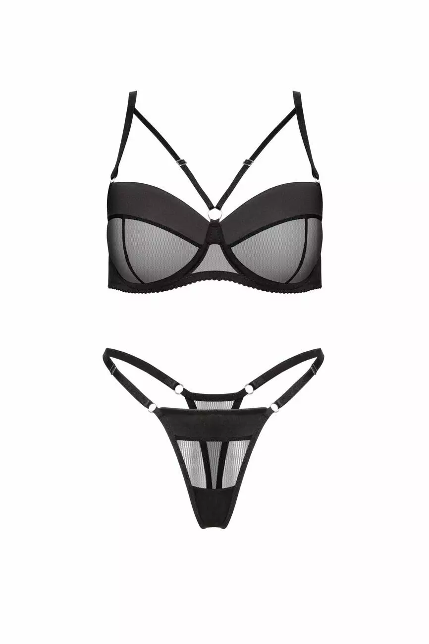 Комплект білизни з еластичної сітки та шовковими вставками. Трусики стрінги, регулюються з боків.