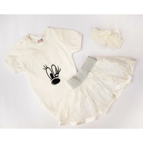 Боди украшено сплошным рисунком, удобные кнопки помогают сделать процесс переодевания максимально простым и быстрым. Юбка прекрасно тянется, мягкий эластичный пояс не давит на животик. В комплект входит повязка.Мягкий хлопковый материал обеспечит комфорт на весь день.