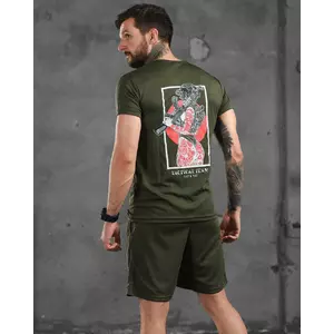 Підготуйтеся до літа з нашим стильним чоловічим комплектом, що містить комфортні шорти та футболку. Шорти виготовлені з легкого дихаючого матеріалу, який ідеально підходить для активного способу життя. У них зручний пояс на зав'язках для ідеальної посадки. Футболка виготовлена з поліестеру, що забезпечує еластичність і комфорт. Вона має стильний принт на грудях і чудово поєднується із шортами.