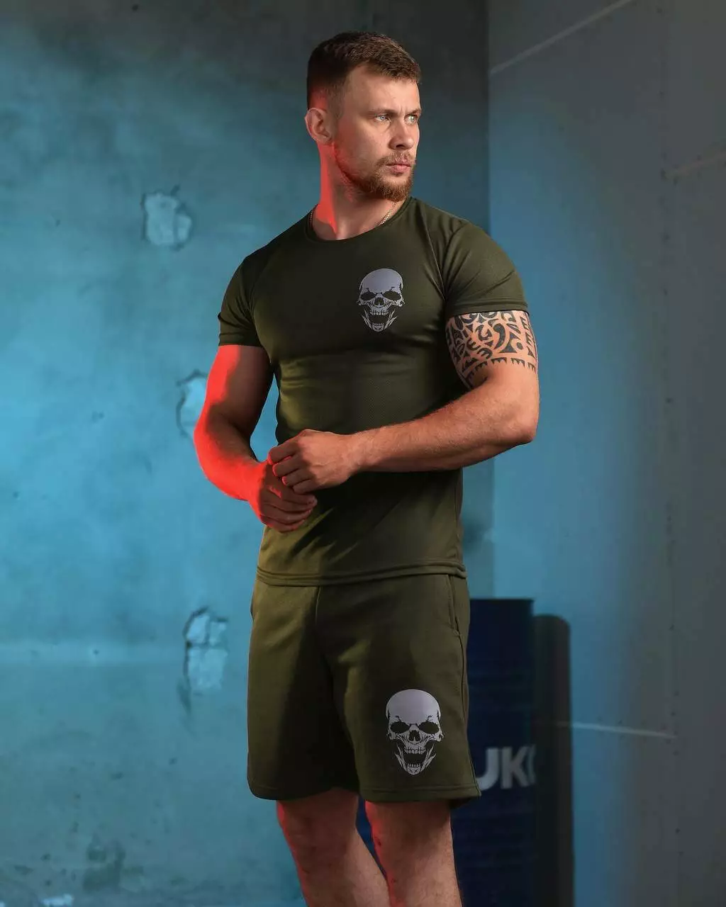 Підготуйтеся до літа з нашим стильним чоловічим комплектом, що містить комфортні шорти та футболку. Шорти виготовлені з легкого дихаючого матеріалу, який ідеально підходить для активного способу життя. У них зручний пояс на зав'язках для ідеальної посадки. Футболка виготовлена з поліестеру, що забезпечує еластичність і комфорт. Вона має стильний принт на грудях і чудово поєднується із шортами.