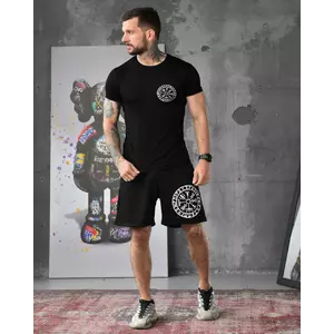 Підготуйтеся до літа з нашим стильним чоловічим комплектом, що містить комфортні шорти та футболку. Шорти виготовлені з легкого дихаючого матеріалу, який ідеально підходить для активного способу життя. У них зручний пояс на зав'язках для ідеальної посадки. Футболка виготовлена з поліестеру, що забезпечує еластичність і комфорт. Вона має стильний принт на грудях і чудово поєднується із шортами.
