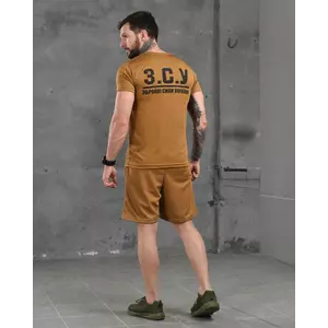 Підготуйтеся до літа з нашим стильним чоловічим комплектом, що містить комфортні шорти та футболку. Шорти виготовлені з легкого дихаючого матеріалу, який ідеально підходить для активного способу життя. У них зручний пояс на зав'язках для ідеальної посадки. Футболка виготовлена з поліестеру, що забезпечує еластичність і комфорт. Вона має стильний принт на грудях і чудово поєднується із шортами.