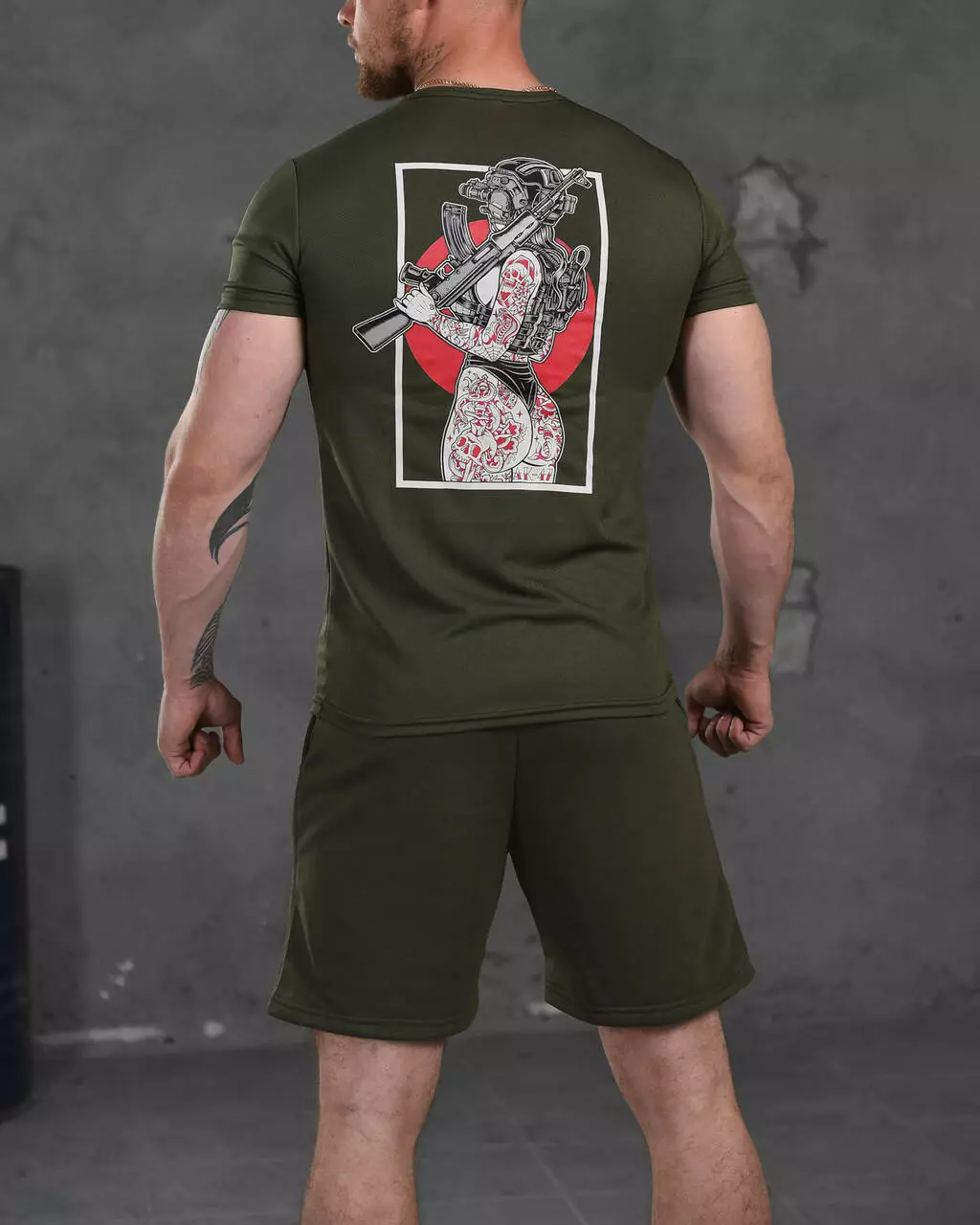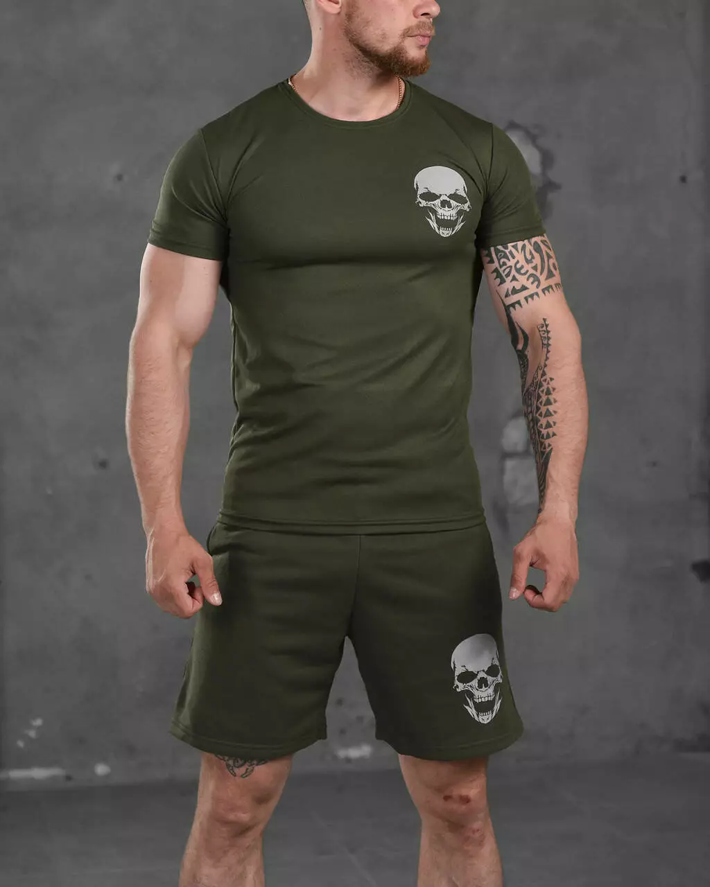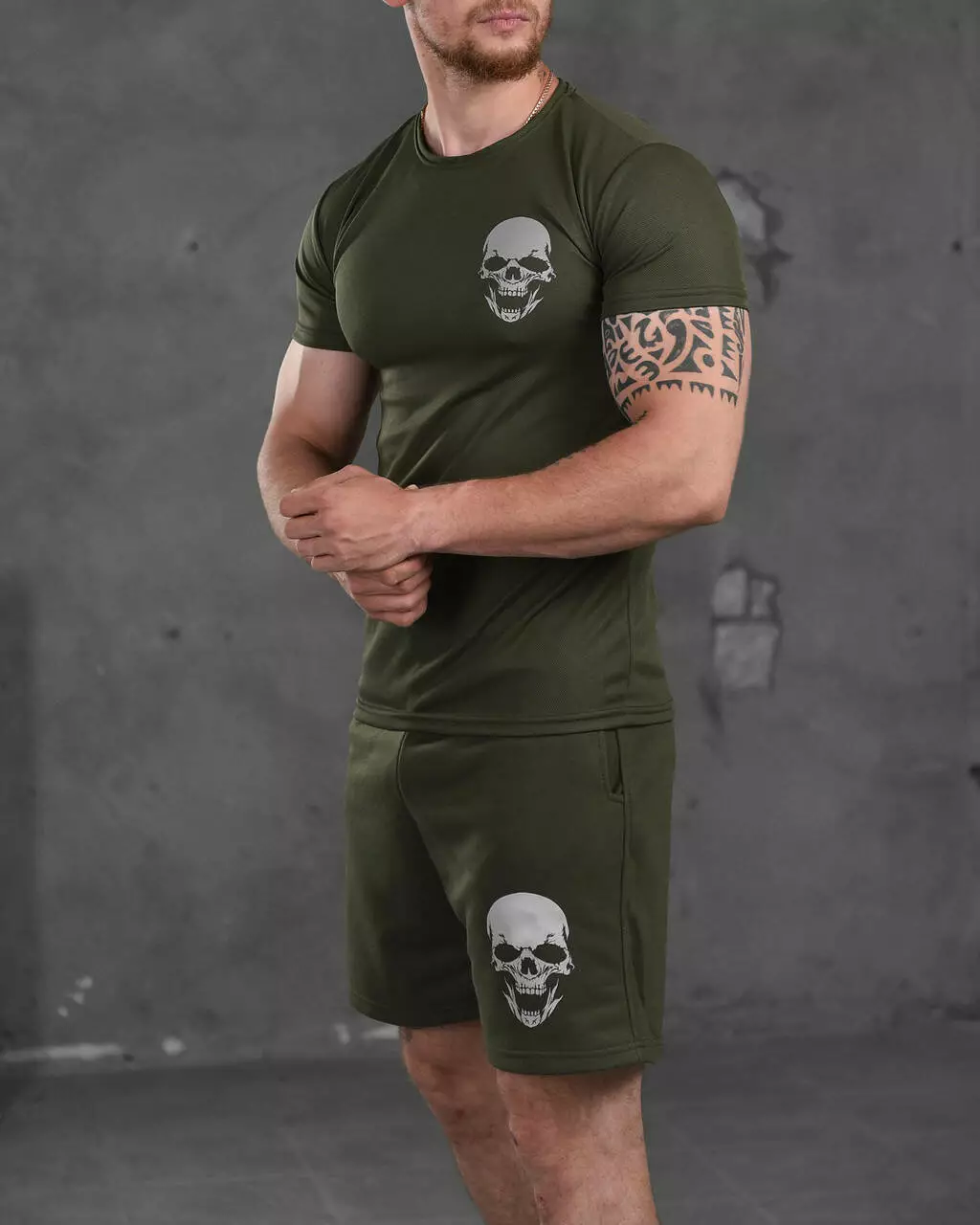 Підготуйтеся до літа з нашим стильним чоловічим комплектом, що містить комфортні шорти та футболку. Шорти виготовлені з легкого дихаючого матеріалу, який ідеально підходить для активного способу життя. У них зручний пояс на зав'язках для ідеальної посадки. Футболка виготовлена з поліестеру, що забезпечує еластичність і комфорт. Вона має стильний принт на грудях і чудово поєднується із шортами.