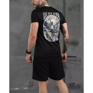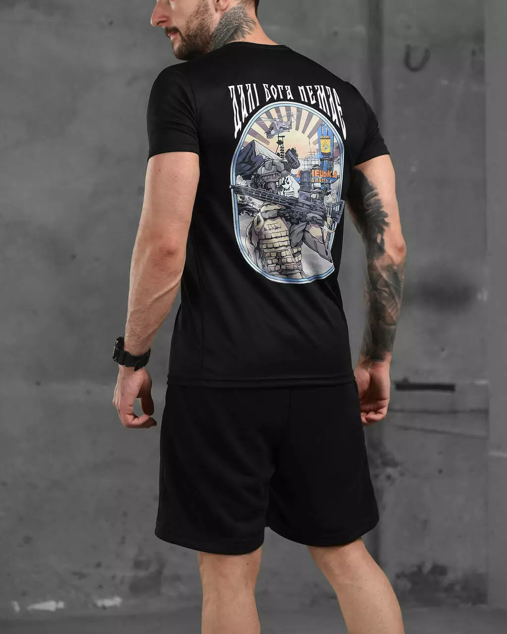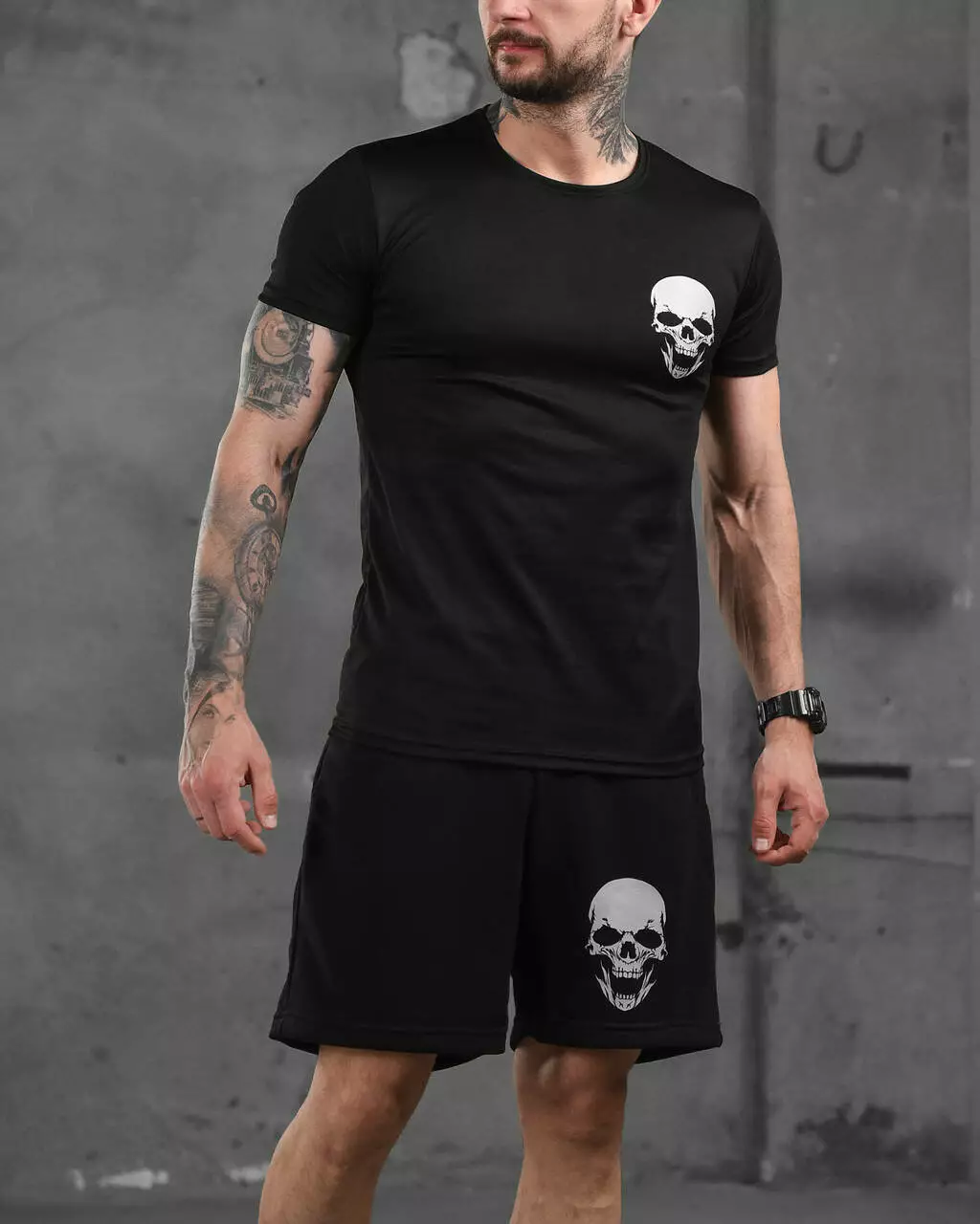 Підготуйтеся до літа з нашим стильним чоловічим комплектом, що містить комфортні шорти та футболку. Шорти виготовлені з легкого дихаючого матеріалу, який ідеально підходить для активного способу життя. У них зручний пояс на зав'язках для ідеальної посадки. Футболка виготовлена з поліестеру, що забезпечує еластичність і комфорт. Вона має стильний принт на грудях і чудово поєднується із шортами.