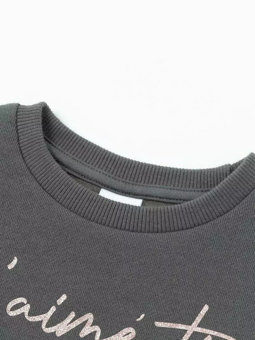 Довгий рукав. На грудях принт у вигляді напису. Горловина, манжети
